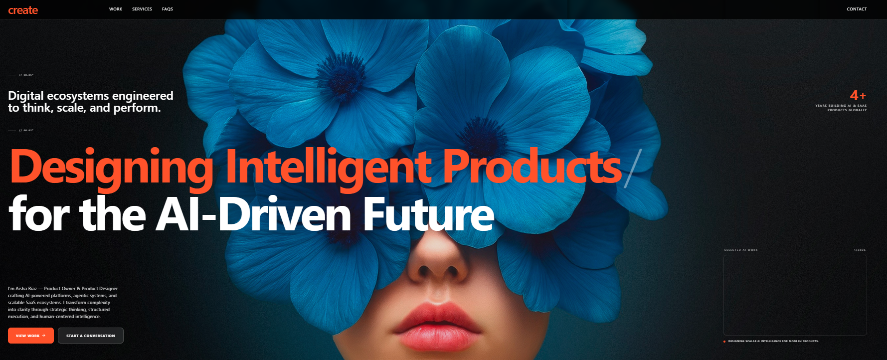 A sleek, modern portfolio showcasing UI/UX design projects with interactive elements.